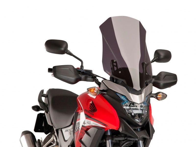 Carenabris Cúpula Puig Touring 8901F Honda CB500X 2016 Ahumada Oscura. La cúpula Puig 8901F Touring está indicada para conducciones de larga distancia. Su diseño es específico para la nueva Honda NC750X y gracias a su doble altura, mejora notablemente la aerodinámica y la disminución del efecto del viento sobre el casco de motorista. De la resistencia se encarga un acrílico de alto impacto con 3 mm de grosor que garantiza la máxima durabilidad y acabados impecables.