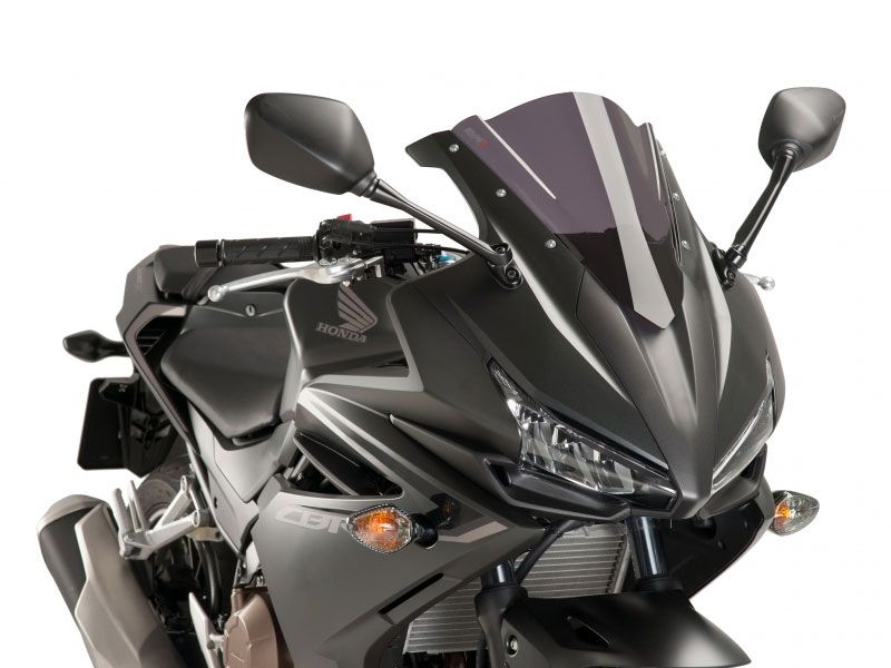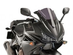 Carenabris Cúpula Puig Racing 8903F Honda CBR 500R 2016 Ahumada Oscura. La cúpula Puig 8903F Racing derivada directamente de la experiencia adquirida en competición. Su diseño es específico para la nueva Honda CBR 500R y gracias a su doble altura, mejora notablemente la aerodinámica y la disminución del efecto del viento sobre el casco. De la resistencia se encarga un acrílico de alto impacto con 3 mm de grosor que garantiza la máxima durabilidad y acabados impecables. Se ha comprobado en el tunel del viento, que las cúpulas racing z-racing mejoran el coeficiente aerodinámico en un 12,7% de media.