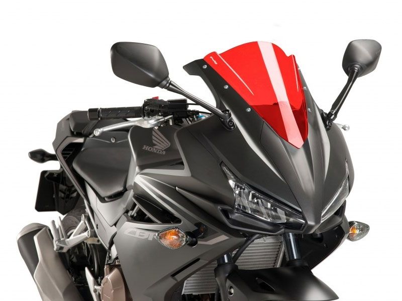Carenabris Cúpula Puig Racing 8903R Honda CBR 500R 2016 Rojo. La cúpula Puig 8903R Racing derivada directamente de la experiencia adquirida en competición. Su diseño es específico para la nueva Honda CBR 500R y gracias a su doble altura, mejora notablemente la aerodinámica y la disminución del efecto del viento sobre el casco. De la resistencia se encarga un acrílico de alto impacto con 3 mm de grosor que garantiza la máxima durabilidad y acabados impecables. Se ha comprobado en el tunel del viento, que las cúpulas racing z-racing mejoran el coeficiente aerodinámico en un 12,7% de media.