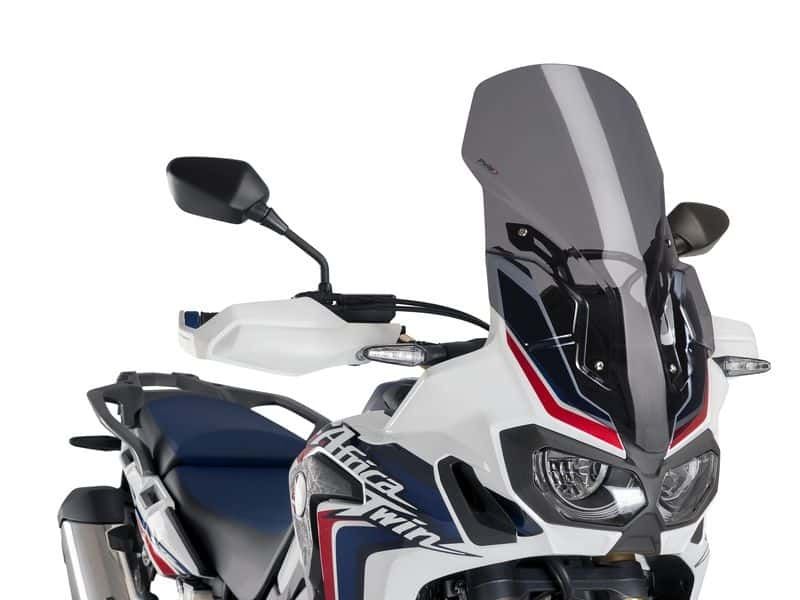 Carenabris Cúpula Puig Touring 8905F Honda CRF1000L Africa Twin 2016 Ahumada Oscura. La cúpula Puig 8905F Touring está indicada para conducciones de larga distancia. Su diseño es específico para la nueva CRF1000L Africa Twin y gracias a su doble altura, mejora notablemente la aerodinámica y la disminución del efecto del viento sobre el casco de motorista. De la resistencia se encarga un acrílico de alto impacto con 3 mm de grosor que garantiza la máxima durabilidad y acabados impecables.