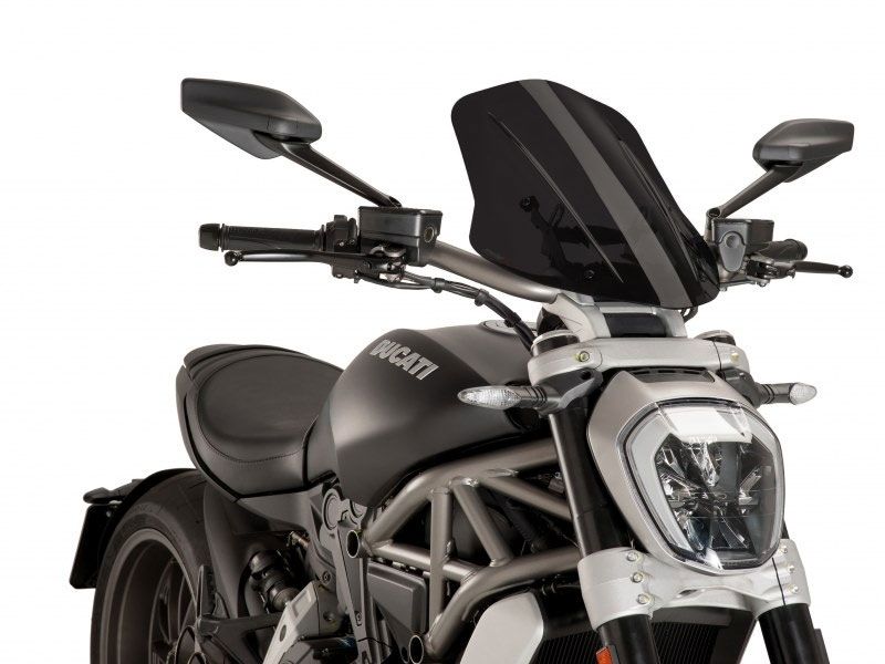 Carenabris moto cúpula Puig 8922F Ducati X Diavel 2016 Naked New Generation Touring ahumada oscura. Cúpula Puig 8922F Naked New Generation específica para la Ducati X Diavel y que gracias a su metracrilato de alto impacto con grosor de 3 mm, ofrece una gran resistencia y excelente fijación a la moto. Esta cúpula ha sido perfectamente estudiada para mejorar la protección del motorista contra el viento. La cúpula Puig 8922 se caracteriza por sus acabados de gran calidad. Cuenta con un mecanismo auto-ajustable para regular la inclinación de la cúpula.