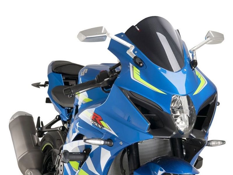 Cúpula Puig Racing 9013C Suzuki GSX R 1000 2017 símil carbono. La cúpula Puig 9013C Racing derivada directamente de la experiencia adquirida en competición. Su diseño es específico para la nueva Suzuki GSX R 1000 2017 y gracias a su doble altura, mejora notablemente la aerodinámica y la disminución del efecto del viento sobre el casco. De la resistencia se encarga un acrílico de alto impacto con 3 mm de grosor que garantiza la máxima durabilidad y acabados impecables. Se ha comprobado en el tunel del viento, que las cúpulas racing z-racing mejoran el coeficiente aerodinámico en un 12,7% de media. Medidas cúpula Puig 9013: 310 mm (alto) x 290 mm (ancho).