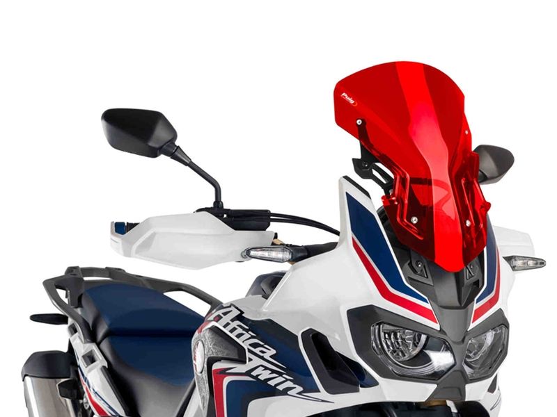 Cúpula Puig 9155R Honda CRF1000L Africa Twin ahumada roja. La cúpula Puig 9155 Touring-Racing se puede regular sin necesidad de herramientas, para ofrecer la protección aerodinámica que demande cada situación y ruta. De la resistencia se encarga un acrílico de alto impacto con 3 mm de grosor que garantiza la máxima durabilidad y acabados impecables. Incluye soporte 9154N que permite obtener una mayor protección con la cúpula.
