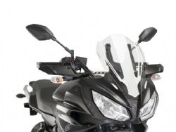 Cúpula Puig Racing 9211W Yamaha MT-07 Tracer 2016 transparente. La cúpula Puig 9211W Racing derivada directamente de la experiencia adquirida en competición. Su diseño es específico para la nueva Yamaha MT-07 Tracer y gracias a su doble altura, mejora notablemente la aerodinámica y la disminución del efecto del viento sobre el casco. De la resistencia se encarga un acrílico de alto impacto con 3 mm de grosor que garantiza la máxima durabilidad y acabados impecables. Se ha comprobado en el tunel del viento, que las cúpulas racing z-racing mejoran el coeficiente aerodinámico en un 12,7% de media. Medidas cúpula Puig 9211: 405 cm (alto) x 295 cm (ancho).