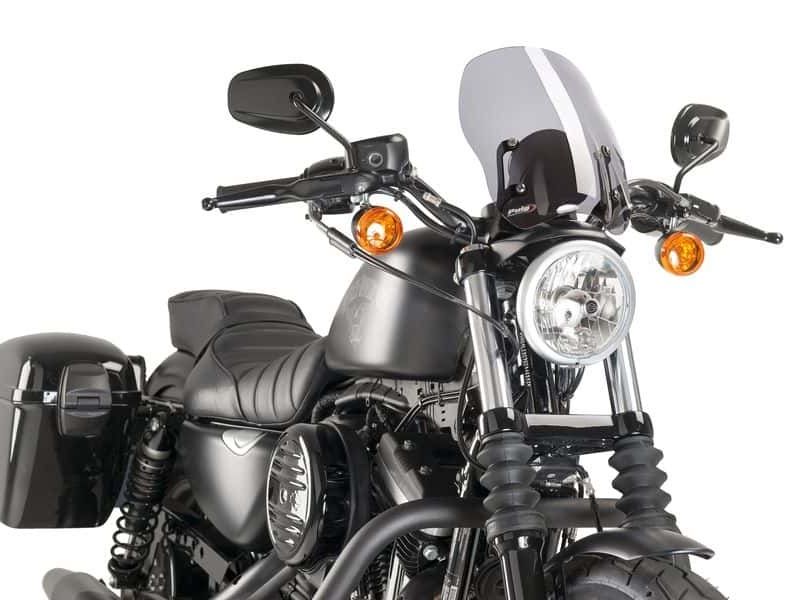 Cúpula Puig 9283H Harley Davidson Sportster 883/1200 Naked New Generation Touring ahumada clara. Cúpula Puig 9283H Naked New Generation específica cada modelo de moto y que gracias a su metracrilato de alto impacto con grosor de 3 mm, ofrece una gran resistencia y excelente fijación a la moto. Esta cúpula ha sido perfectamente estudiada para mejorar la protección del motorista contra el viento. La cúpula Puig 9283 se caracteriza por sus acabados de gran calidad.