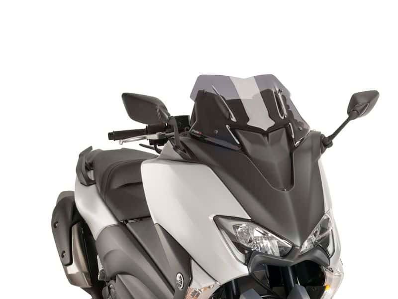 Carenabris moto cúpula Puig 9423H Yamaha T-Max 530 2017 V-Tech Line Sport Ahumado. Cúpula Puig 9423 V-Tech Line Sport específica para la Yamaha T-Max 530 2017 desarrollada en el tunel de viento para mejorar la estabilidad y penetración aerodinámica de origen. Tanto en la parte central como lateral presenta una forma angulosa que facilita la canalización del aire redirigiéndolo a ambos lados del piloto. La cúpula Puig 9423 mide 340 X 440mm. Posee la homologación TÜV u ABE 38120.