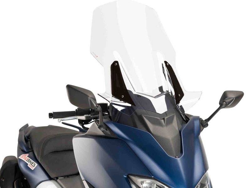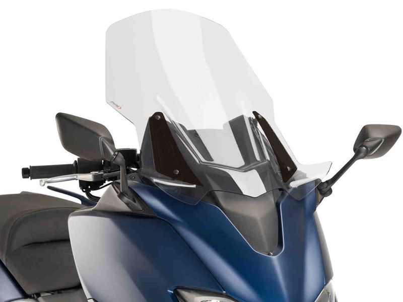 Cúpula Puig 9424W. Cúpula Puig 9424W transparente de la serie V-Tech Line Touring y diseño específico para la nueva Yamaha T-Max 530 2017. Desarrollada en el túnel del viento para mejorar la estabilidad y la penetración aerodinámica de la cúpula original. Realizada con materiales de alta calidad, la cúpula cúpula Puig 9424 V-Tech Line Touring ofrece un diseño con mayor altura que la cúpula original y por tanto una mayor protección contra el viento. Medidas (Altura x Anchura): 675 x 555 mm / 115 mm más alta que la original.