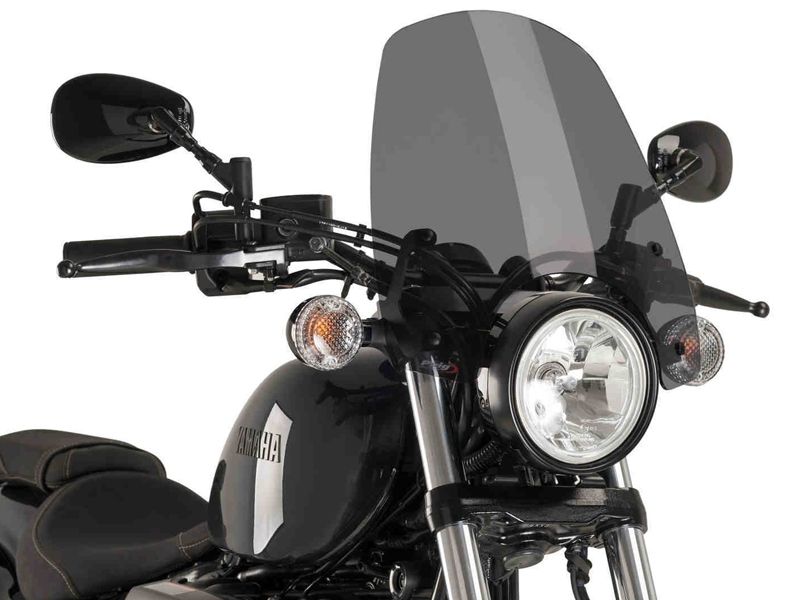 Cúpula Puig 9438F Yamaha XV950 2017 Naked New Generation Touring ahumada oscura. Cúpula Puig 9438F Naked New Generation específica cada modelo de moto y que gracias a su metracrilato de alto impacto con grosor de 3 mm, ofrece una gran resistencia y excelente fijación a la moto. Esta cúpula ha sido perfectamente estudiada para mejorar la protección del motorista contra el viento. La cúpula Puig 9438 se caracteriza por sus acabados de gran calidad.