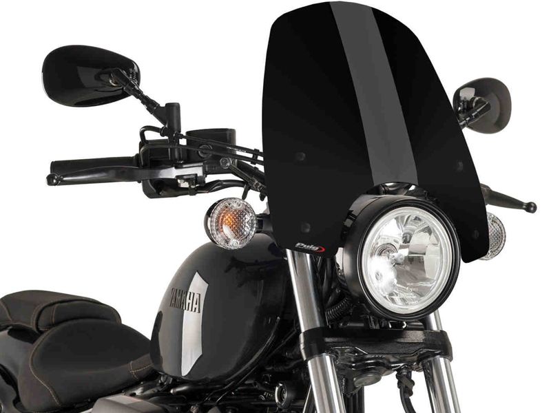 Cúpula Puig 9438N Yamaha XV950 2017 Naked New Generation Touring negra. Cúpula Puig 9438N Naked New Generation específica cada modelo de moto y que gracias a su metracrilato de alto impacto con grosor de 3 mm, ofrece una gran resistencia y excelente fijación a la moto. Esta cúpula ha sido perfectamente estudiada para mejorar la protección del motorista contra el viento. La cúpula Puig 9438 se caracteriza por sus acabados de gran calidad.