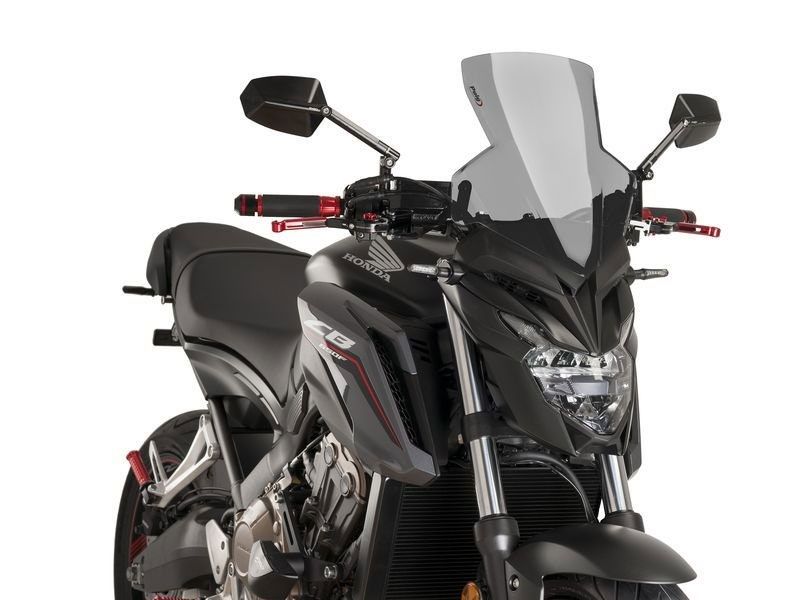 Carenabris moto cúpula Puig 9687F Honda CB 650 F 2017 Naked New Generation Sport ahumada oscura. Cúpula Puig 9687 Naked New Generation específica para la Honda CB 650 F y que gracias a su metracrilato de alto impacto con grosor de 3 mm, ofrece una gran resistencia y excelente fijación a la moto. Esta cúpula ha sido perfectamente estudiada para mejorar la protección del motorista contra el viento. La cúpula Puig 9687 se caracteriza por sus acabados de gran calidad. Posee la homologación TÜV u ABE 38188.