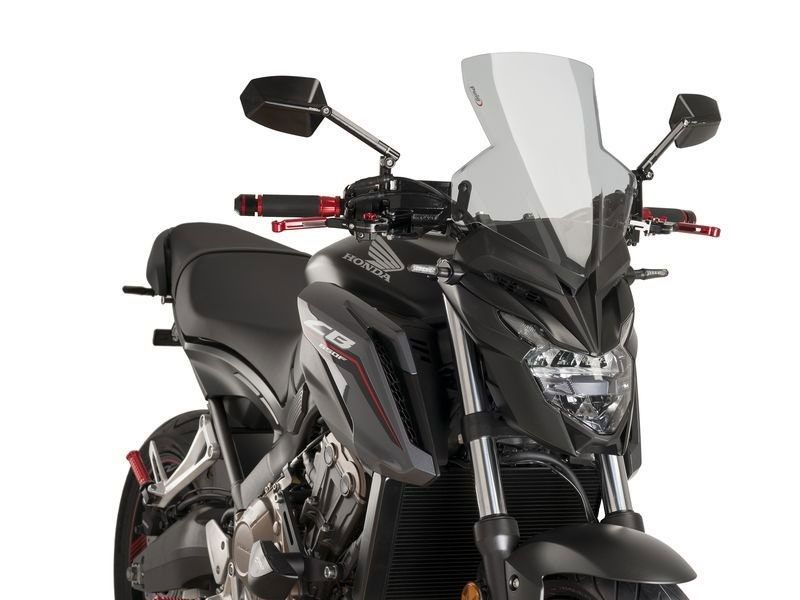Carenabris moto cúpula Puig 9687H Honda CB 650 F 2017 Naked New Generation Sport ahumada clara. Cúpula Puig 9687 Naked New Generation específica para la Honda CB 650 F y que gracias a su metracrilato de alto impacto con grosor de 3 mm, ofrece una gran resistencia y excelente fijación a la moto. Esta cúpula ha sido perfectamente estudiada para mejorar la protección del motorista contra el viento. La cúpula Puig 9687 se caracteriza por sus acabados de gran calidad. Posee la homologación TÜV u ABE 38188.