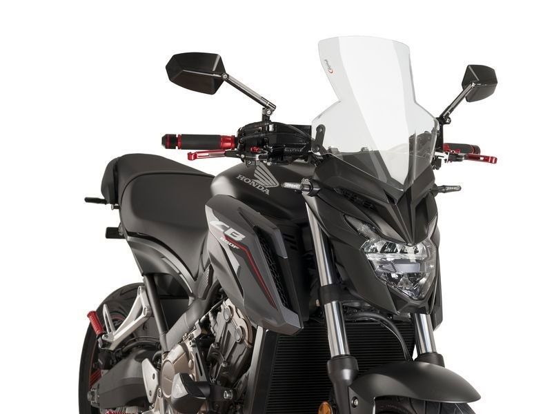 Carenabris moto cúpula Puig 9687W Honda CB 650 F 2017 Naked New Generation Sport transparente. Cúpula Puig 9687 Naked New Generation específica para la Honda CB 650 F y que gracias a su metracrilato de alto impacto con grosor de 3 mm, ofrece una gran resistencia y excelente fijación a la moto. Esta cúpula ha sido perfectamente estudiada para mejorar la protección del motorista contra el viento. La cúpula Puig 9687 se caracteriza por sus acabados de gran calidad. Posee la homologación TÜV u ABE 38188.