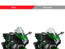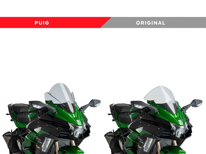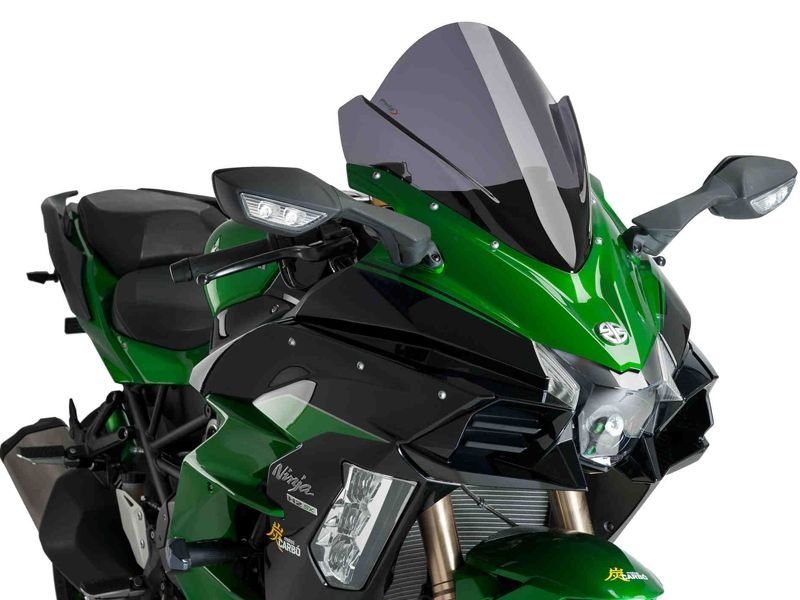 Cúpula Puig 9704F Racing Kawasaki NINJA H2 SX 2018 ahumada oscura. La cúpula Puig 9704 Racing derivada directamente de la experiencia adquirida en competición. Su diseño es específico para la nueva Kawasaki Ninja H2 SX y gracias a su doble altura, mejora notablemente la aerodinámica y la disminución del efecto del viento sobre el casco. De la resistencia se encarga un acrílico de alto impacto con 3 mm de grosor que garantiza la máxima durabilidad y acabados impecables. Se ha comprobado en el tunel del viento, que las cúpulas racing z-racing mejoran el coeficiente aerodinámico en un 12,7% de media. Medidas cúpula Puig 9704: 400 mm (alto) x 390 mm (ancho) / 15 mm más alta que la original.