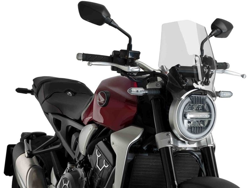 Cúpula Puig 9748W Honda CB 1000 R 2018 Naked New Generation Sport ahumada clara. Cúpula Puig 9748 Naked New Generation específica para la Honda CB 1000 R 2018 y que gracias a su metracrilato de alto impacto con grosor de 3 mm, ofrece una gran resistencia y excelente fijación a la moto. Esta cúpula ha sido perfectamente estudiada para mejorar la protección del motorista contra el viento. La cúpula Puig 9748 se caracteriza por sus acabados de gran calidad. Medidas (altura x anchura): 348 x 290 MM / 190 mm más alta que la original. Homologación ABE 3818 y TÜV.
