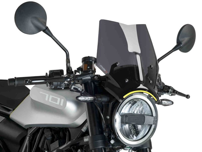 Cúpula Puig 9750F Husqvarna VITPILEN 701 2017/2019 Naked New Generation Sport ahumada oscura. Cúpula Puig 9750 Naked New Generation específica para la Husqvarna VITPILEN 401 2018 y que gracias a su metracrilato de alto impacto con grosor de 3 mm, ofrece una gran resistencia y excelente fijación a la moto. Esta cúpula ha sido perfectamente estudiada para mejorar la protección del motorista contra el viento. La cúpula Puig 9750 se caracteriza por sus acabados de gran calidad. Medidas (altura x anchura): 320 x 290 MM. Homologación ABE 3818 y TÜV.