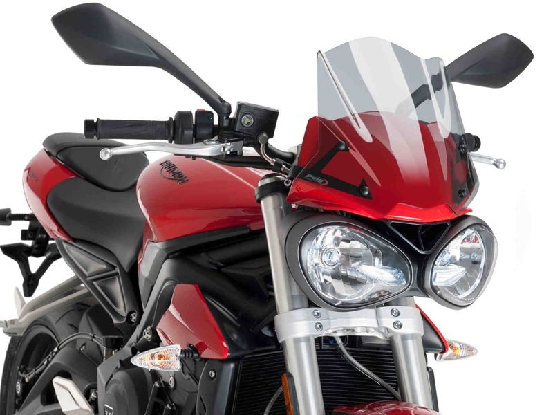 Cúpula Puig 9999H Triumph Street Triple S 2016/2018 Naked New Generation Sport ahumada clara. Cúpula Puig 9999 Naked New Generation específica para la Street Triple S 2017 y que gracias a su metracrilato de alto impacto con grosor de 3 mm, ofrece una gran resistencia y excelente fijación a la moto. Esta cúpula ha sido perfectamente estudiada para mejorar la protección del motorista contra el viento. La cúpula Puig 9999 se caracteriza por sus acabados de gran calidad. Medidas: 310 mm (alto) x 330 mm (ancho).
