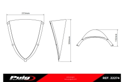Con unas medidas de 340 x 255 mm, la Puig R-Racer 22274 es 60 mm más alta que la cúpula original, desviando mejor el aire que impacta en casco y hombros, lo que proporciona una conducción más cómoda y estable en carretera y especialmente en circuito.