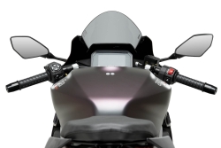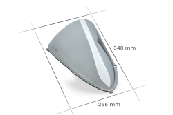 Con unas medidas de 340 x 255 mm, la Puig R-Racer 22274 es 60 mm más alta que la cúpula original, desviando mejor el aire que impacta en casco y hombros, lo que proporciona una conducción más cómoda y estable en carretera y especialmente en circuito.