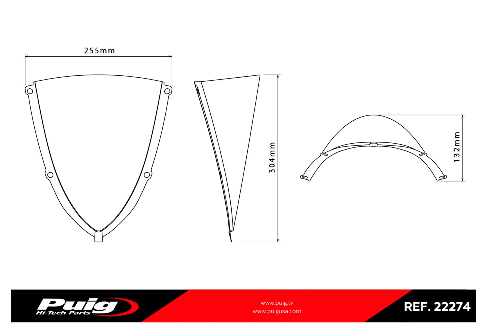 Con unas medidas de 340 x 255 mm, la Puig R-Racer 22274 es 60 mm más alta que la cúpula original, desviando mejor el aire que impacta en casco y hombros, lo que proporciona una conducción más cómoda y estable en carretera y especialmente en circuito.