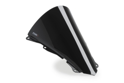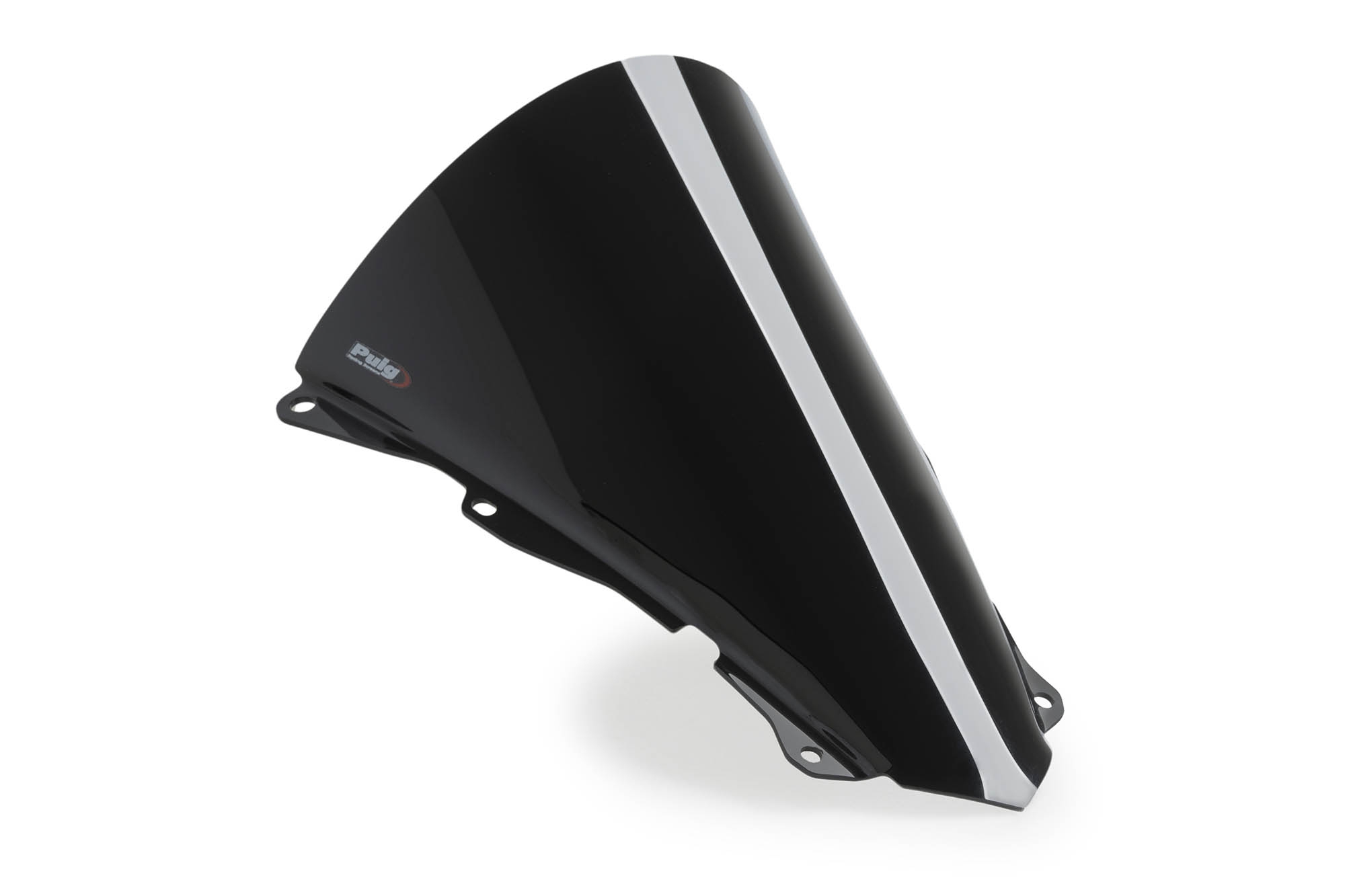 Con unas medidas de 363 x 285 mm, la Puig R-Racer 22468 es 80 mm más alta que la cúpula original, lo que permite desviar el viento que incide sobre el casco y los hombros, mejorando la protección y la comodidad del piloto a alta velocidad.