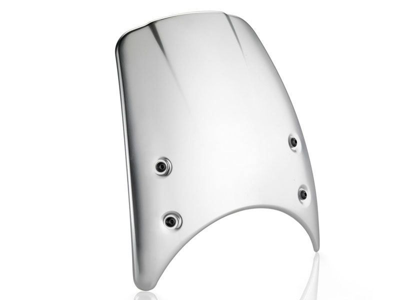 Cúpula Rizoma CF010A Ducati Scrambler 2015 Plata. La cúpula Rizoma CF010A ha sido estudiada y diseñada para estilizar la parte delantera de la Ducati Scrambler 2015. Esta cúpula da un toque de elegancia y agresividad a todo el puente de mando además de una notable mejoria en la aerodinámica. Gracias a su fabricación a partir de un bloque único de aluminio de alta calidad y a su moldeado en 3D, la cúpula Rizoma CF010A alcanza inéditas cualidades estéticas y de ligereza.
