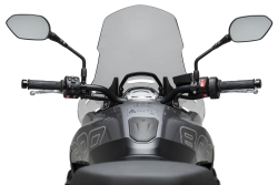 Con unas dimensiones de 610 x 440 mm y 90 mm más alta que la pantalla original, la Puig Touring 22521 es ideal para viajes largos y conducción trail. Su diseño aerodinámico ha sido probado en túnel de viento, lo que garantiza un flujo de aire más eficiente y una reducción notable de turbulencias.
