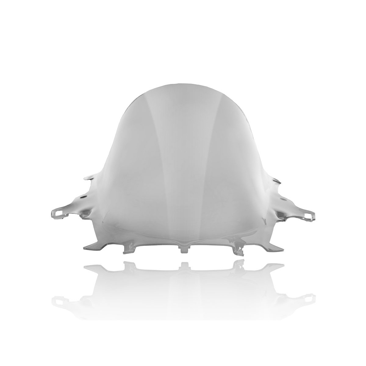 Cúpula WRS YA006F Race Alto Yamaha YZF-R1 2015-2019. Cúpula de moto WRS Race Alto fabricada en plexiglás de PMMA de alta calidad con 2 mm de espesor homologación DOT626, el mismo material que WRS fabricación de los carenados utilizados en los campeonatos del mundo de MotoGP y Superbike. El grosor de 2 mm junto con este material le proporciona ligereza y flexibilidad, resultando considerablemente más resistente al impacto en caso de una caída. Posee un diseño estudiado para minimizar las molestas turbulencias que se producen en el casco, así como el aire en los hombros. Está cúpula racing además garantiza un acople perfecto y una integración óptima con la línea de la moto, ofreciendo un aspecto aún más agresivo y deportivo.