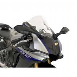 Cúpula WRS YA006T Race Alto Yamaha YZF-R1 2015-2019. Cúpula de moto WRS Race Alto fabricada en plexiglás de PMMA de alta calidad con 2 mm de espesor homologación DOT626, el mismo material que WRS fabricación de los carenados utilizados en los campeonatos del mundo de MotoGP y Superbike. El grosor de 2 mm junto con este material le proporciona ligereza y flexibilidad, resultando considerablemente más resistente al impacto en caso de una caída. Posee un diseño estudiado para minimizar las molestas turbulencias que se producen en el casco, así como el aire en los hombros. Está cúpula racing además garantiza un acople perfecto y una integración óptima con la línea de la moto, ofreciendo un aspecto aún más agresivo y deportivo.