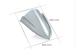 Con unas dimensiones de 380 mm de alto x 265 mm de ancho, la cúpula Puig 22273 es 30 mm más alta que la original, lo que se traduce en una mejor desviación del aire hacia la parte superior del casco y el torso del piloto.