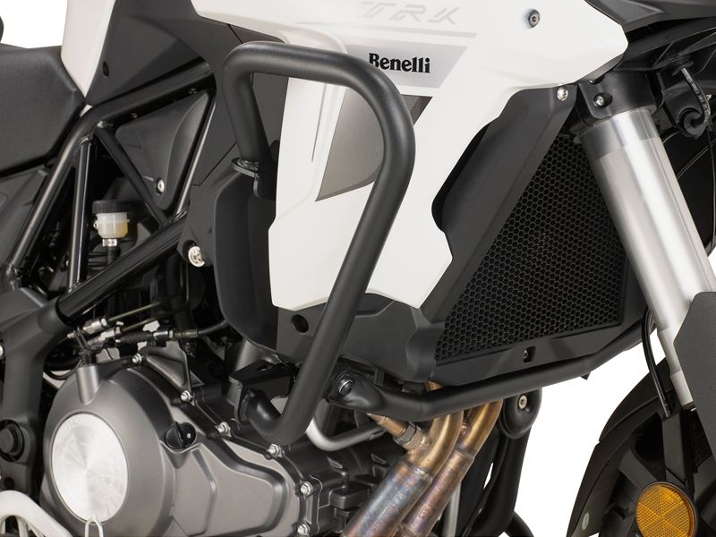 Defensas motor Givi TNH8703 Benelli TRK 502 2017 (color negro). Defensas de motor TNH8703 con diseño tubular y que gracias a sus 25 mm de grosor, garantizan la máxima solidez y resistencia contra los posibles impactos. Las defensas TNH8703 protegen principalmente la parte media de la moto. Posición superior.