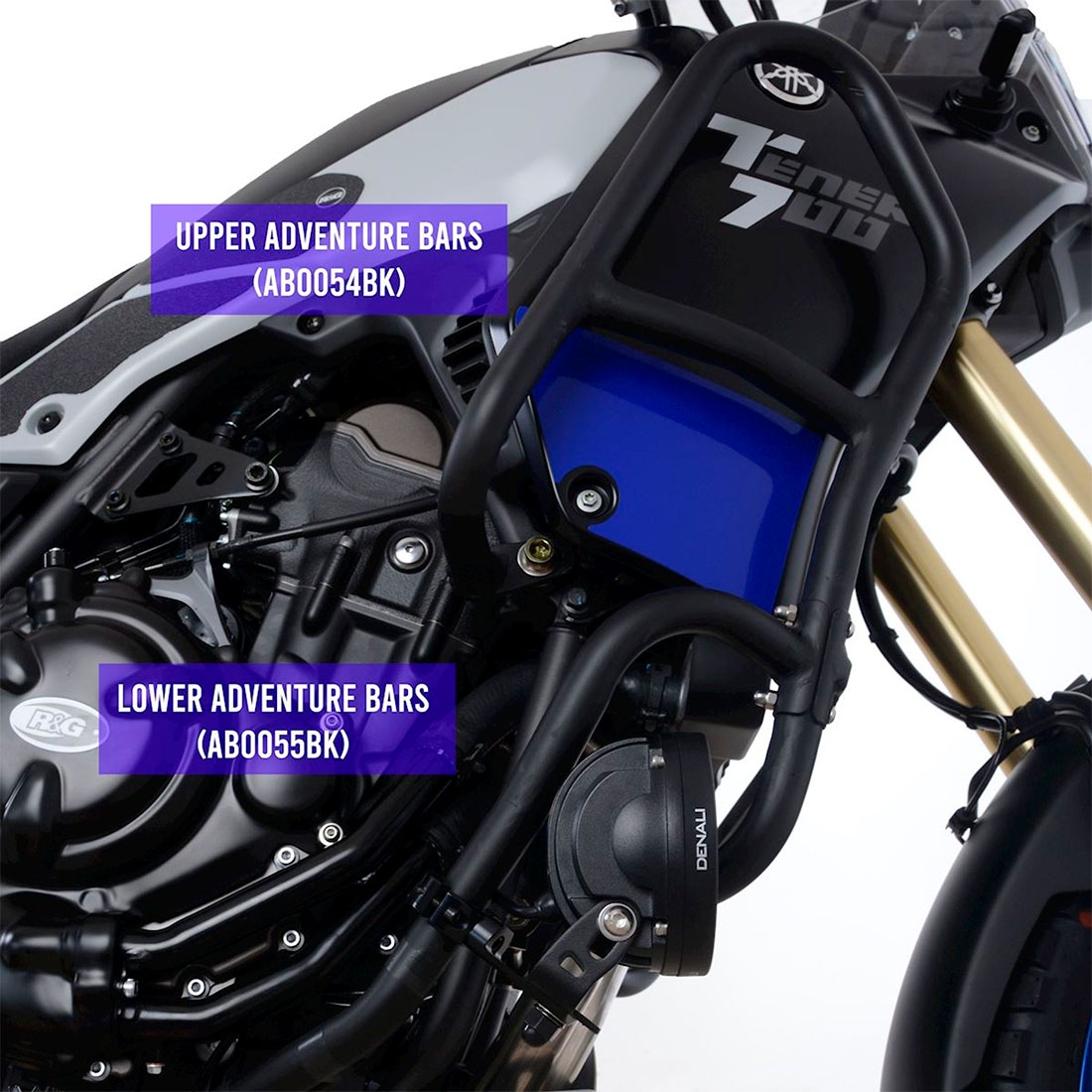 Defensas laterales Rg AB0055BK Yamaha Tenere 700 2019-2021. Las defensas Rg-racing AB0055BK (Adventure Bars) están fabricadas en acero dulce con una capa resistente de pintura en polvo. Ofrecen la protección máxima de los laterales de la moto en las condiciones más exigentes. Incluyen todos los accesorios necesarios para su montaje.