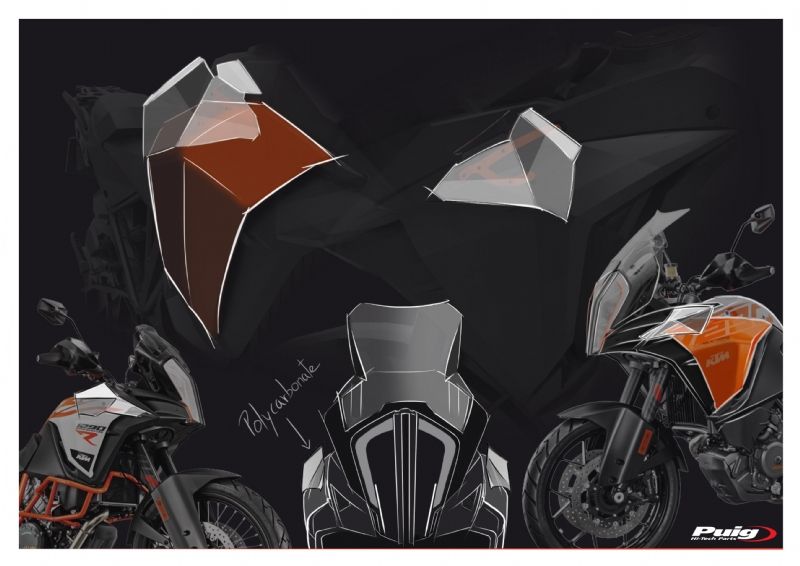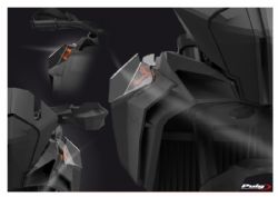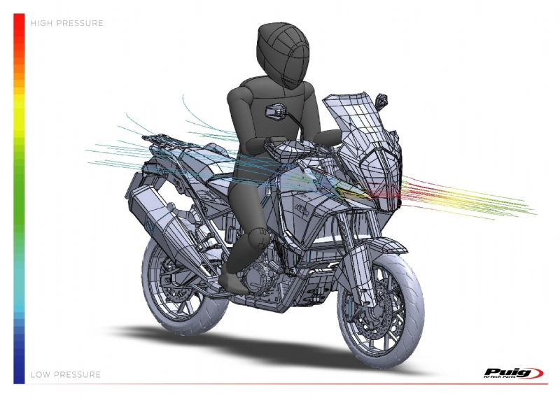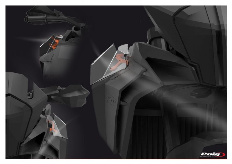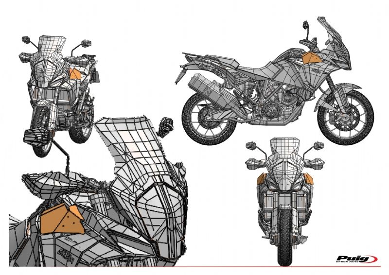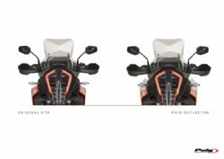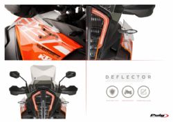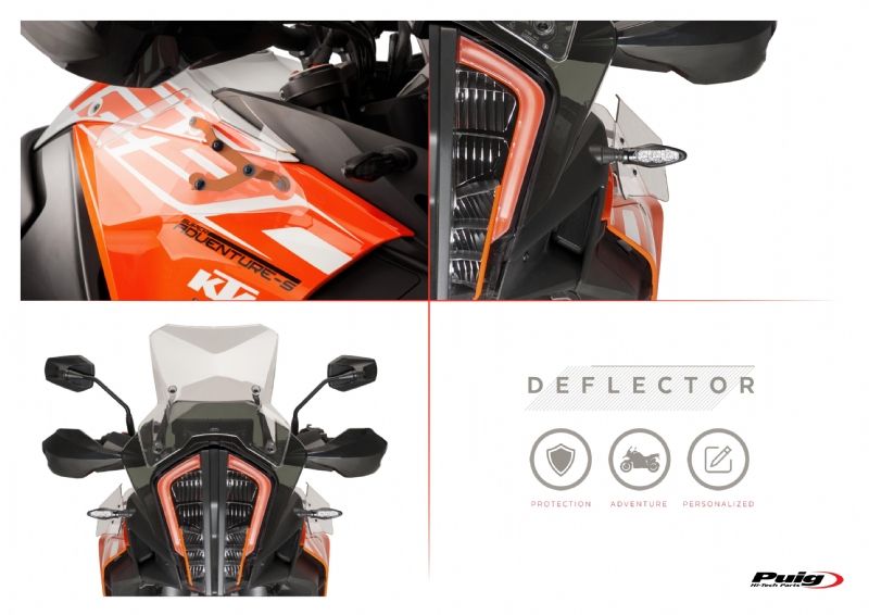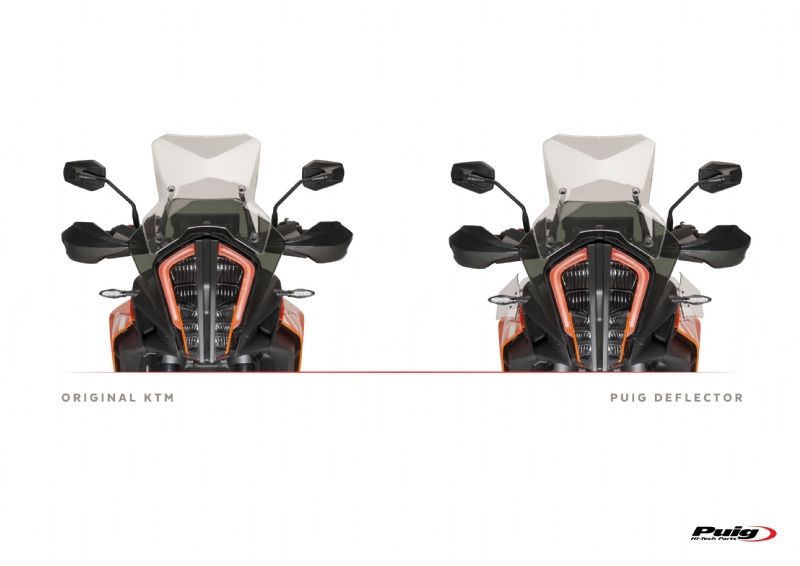 Deflectores inferiores Puig 9623W KTM 1090 Adventure 2018. Los nuevos deflectores Puig 9623W están realizados con material Abs de gran resistencia contra los impactos. Estan diseñados para ofrecer mayor confort durante la conducción, ya que desvian el flujo de aire hacia el exterior de las piernas. Su forma se ajusta al diseño de la moto ofreciendo un aspecto discreto, acabados de calidad y un fácil montaje.