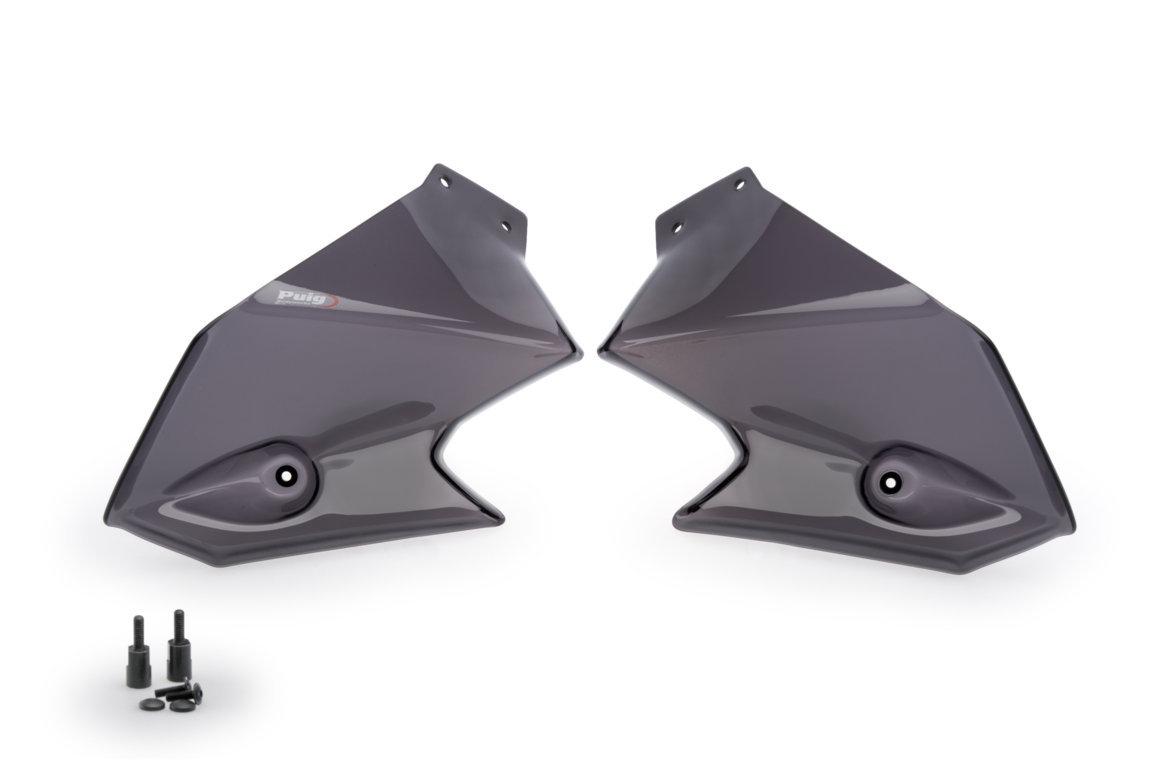 Deflectores frontales Puig 21127F Extended Benelli TRK 502 2016-2023 (ahumado oscuro). El resguardo ante el viento es un aspecto clave de tu motocicleta y en Puig comprenden la relevancia de brindar apoyo para lograr una óptima eficiencia aerodinámica en sus parabrisas. Por esta razón, han creado estos deflectores de moto Puig Extended que se adaptan perfectamente a las pantallas Puig y OEM, diseñados para integrarse de manera impecable en su estructura y ensamblaje, sin inconvenientes de sujeción ni espacios no deseados. Los deflectores vienen con un manual de instalación que facilita su correcta sujeción a los parabrisas de Puig, además de un análisis de las ventajas aerodinámicas al combinar ambos componentes de la marca. Los deflectores frontales Puig Extended son más grandes que los modelos originales.