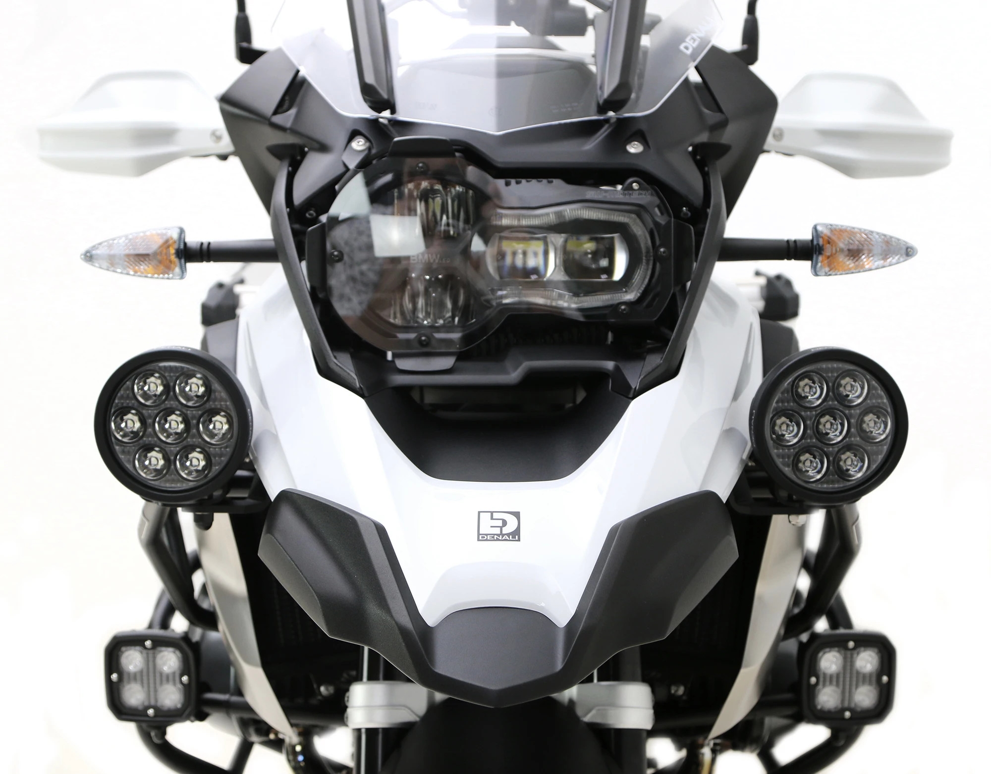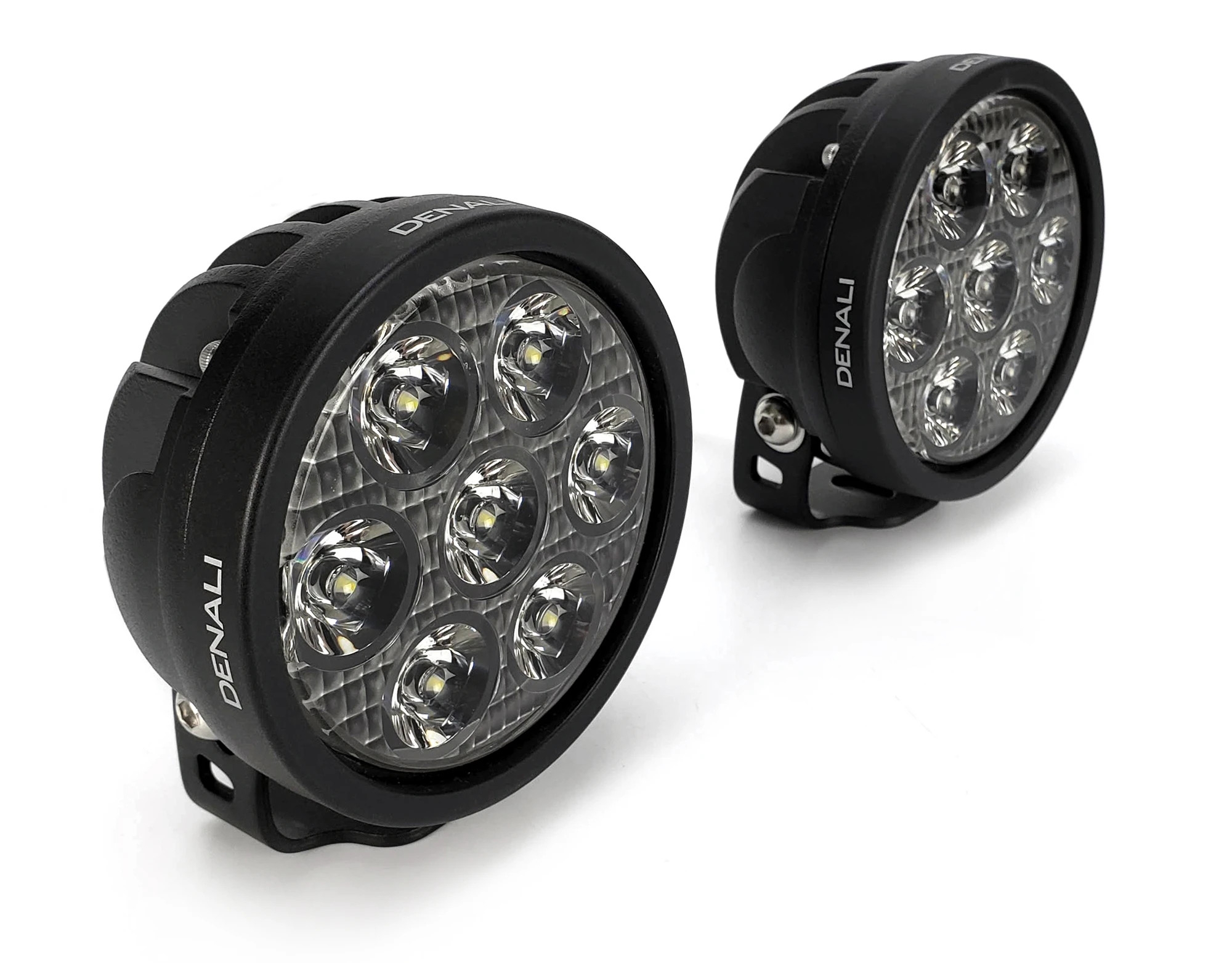 Las luces LED Denali D7 incorporan siete potentes LED Cree XPL HI de 10 W por módulo, capaces de generar una intensidad total de 15 330 lúmenes. Su avanzada óptica proyecta un haz mixto tipo “spot” y de inundación que alcanza más de 458 m de distancia y 60 m de ancho, proporcionando una iluminación frontal de alta definición. Este kit ofrece más del doble de potencia que el Denali D4, situándose como una referencia en el segmento Adventure Touring y Off-Road.
