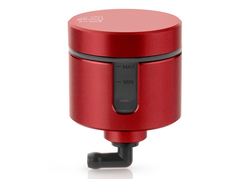 Depósito fluidos Rizoma CT157R Notch Rojo. Realizado en un bloque de aluminio único y mecanizado mediante CNC, garantiza la máxima fiabilidad y precisión. El depósito de fluidos Rizoma CT157R Notch se presenta en diferentes formatos para diferentes aplicaciones y ofrece una amplia gama de colores (plata, negro, oro, rojo y bronce). Su diseño único incluye un vidrio estético y funcional que permite ver la cantidad de fluido disponible.