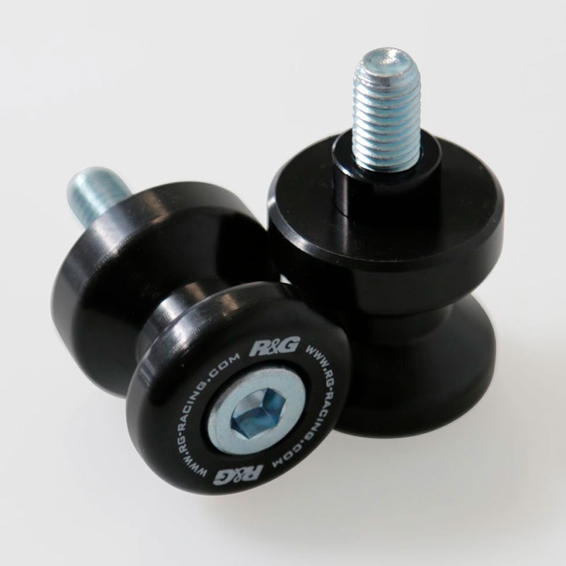 Diábolos caballete Rg-Racing CR0009BK Métrica 10 color negro. Diábolos para caballete Rg-Racing realizados en aluminio y compatibles con los caballete traseros universales. Precio de la pareja.