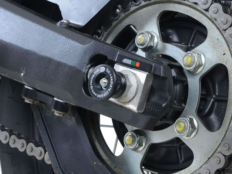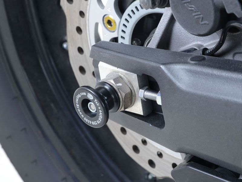 Diábolos caballete Rg-Racing SS0045BK. Diábolos para caballete Rg-Racing SS0045BK con protección para el basculante. Realizados en aluminio y compatibles con los caballete traseros universales tipo V. Precio de la pareja.