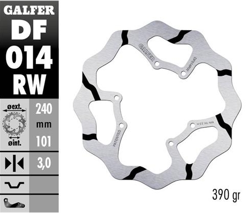 Disco de freno Galfer DF014RW Wave Fijo Ranurado 240x3mm. Descubre la excelencia en rendimiento y seguridad con los discos de freno Galfer Wave Fijos. Diseñados para ofrecer una frenada potente y consistente, los discos de freno Galfer Wave Fijos son la elección perfecta para los motociclistas que buscan lo mejor en tecnología de frenado.