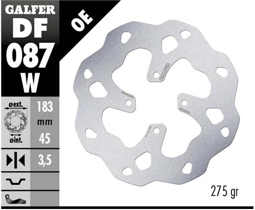 Disco de freno Galfer DF087W Wave Fijo 183x3.5mm. Descubre la excelencia en rendimiento y seguridad con los discos de freno Galfer Wave Fijos. Diseñados para ofrecer una frenada potente y consistente, los discos de freno Galfer Wave Fijos son la elección perfecta para los motociclistas que buscan lo mejor en tecnología de frenado.