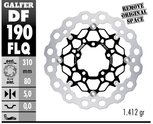Medidas del Disco de freno Galfer DF190FLQ Flotante Cubiq Nucleo Acero 310x5mm