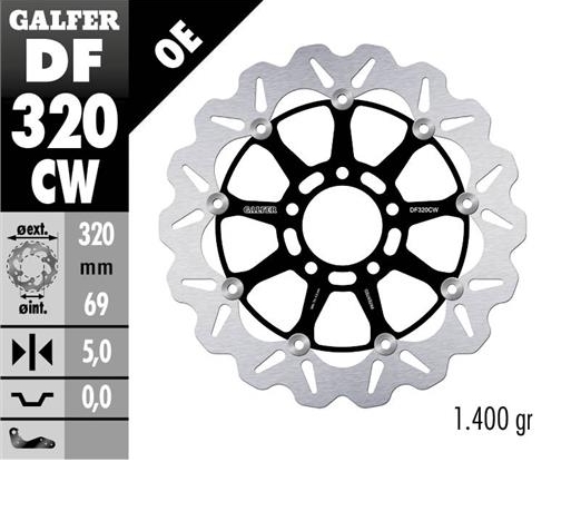 Disco de freno Galfer DF320CW Wave Flotante Completo Nucleo Aluminio 320mm