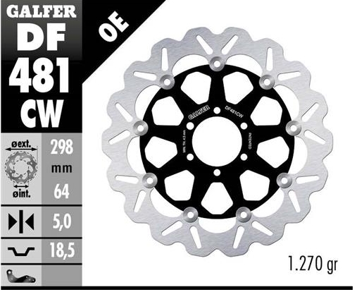 Disco de freno Galfer DF481CW Wave Flotante Completo Nucleo Aluminio 300mm. Descubre la máxima tecnología en sistemas de frenado con los discos de freno Galfer Wave Flotantes. Estos discos de freno están diseñados para ofrecer un rendimiento superior, combinando potencia de frenado y una excelente capacidad de disipación del calor, ideales para los motociclistas que exigen lo mejor en sus rutas.