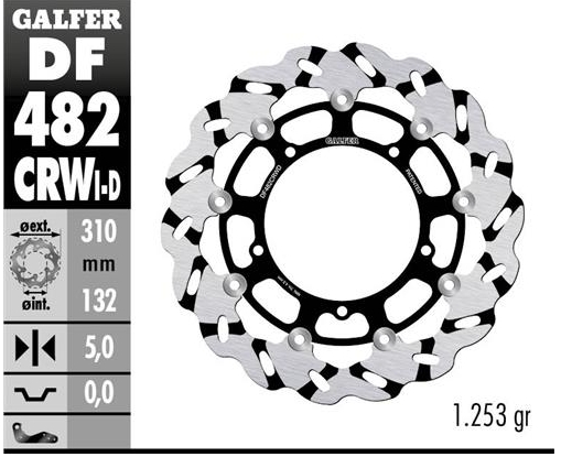 Disco de freno Galfer DF482CRWD Wave Flotante Ranurado Derecho. Descubre la máxima tecnología en sistemas de frenado con los discos de freno Galfer Wave Flotantes. Estos discos de freno están diseñados para ofrecer un rendimiento superior, combinando potencia de frenado y una excelente capacidad de disipación del calor, ideales para los motociclistas que exigen lo mejor en sus rutas.