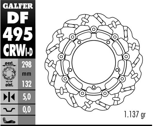Disco de freno Galfer DF495CRWI Wave Flotante Ranurado Izquierdo. Descubre la máxima tecnología en sistemas de frenado con los discos de freno Galfer Wave Flotantes. Estos discos de freno están diseñados para ofrecer un rendimiento superior, combinando potencia de frenado y una excelente capacidad de disipación del calor, ideales para los motociclistas que exigen lo mejor en sus rutas.
