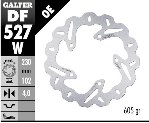 Disco de freno Galfer DF527W Wave Fijo 230x4mm. Descubre la excelencia en rendimiento y seguridad con los discos de freno Galfer Wave Fijos. Diseñados para ofrecer una frenada potente y consistente, los discos de freno Galfer Wave Fijos son la elección perfecta para los motociclistas que buscan lo mejor en tecnología de frenado.