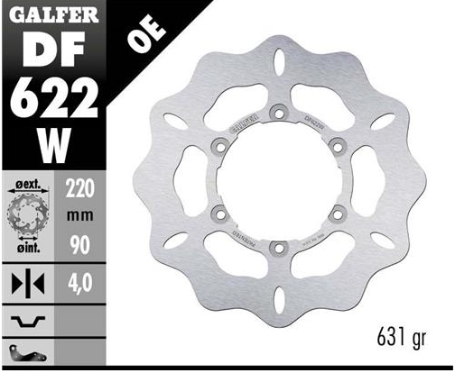 Disco de freno Galfer DF622W Wave Fijo 220x4mm. Descubre la excelencia en rendimiento y seguridad con los discos de freno Galfer Wave Fijos. Diseñados para ofrecer una frenada potente y consistente, los discos de freno Galfer Wave Fijos son la elección perfecta para los motociclistas que buscan lo mejor en tecnología de frenado.