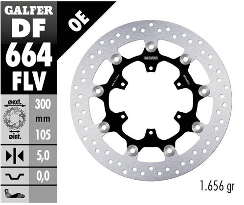 Disco de freno Galfer DF664FLV Round Flotante Nucleo Acero 300x5mm. El disco de freno Galfer FLV Round Flotante está diseñado para ofrecer un rendimiento excepcional en una amplia variedad de condiciones de conducción. Este disco flotante destaca por su diseño de núcleo y construcción de alta calidad, que garantizan una respuesta de frenado precisa y fiable.