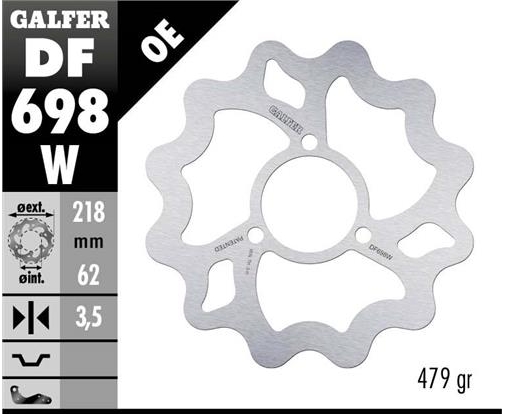 Disco de freno Galfer DF698W Wave Fijo 218x3.5mm. Descubre la excelencia en rendimiento y seguridad con los discos de freno Galfer Wave Fijos. Diseñados para ofrecer una frenada potente y consistente, los discos de freno Galfer Wave Fijos son la elección perfecta para los motociclistas que buscan lo mejor en tecnología de frenado.