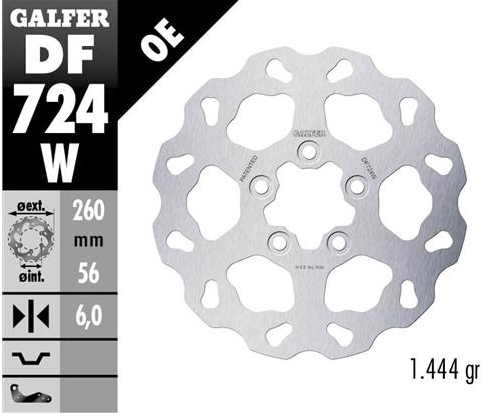 Disco de freno Galfer DF724W Wave Fijo 260x6mm. Descubre la excelencia en rendimiento y seguridad con los discos de freno Galfer Wave Fijos. Diseñados para ofrecer una frenada potente y consistente, los discos de freno Galfer Wave Fijos son la elección perfecta para los motociclistas que buscan lo mejor en tecnología de frenado.