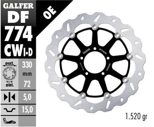 Disco de freno Galfer DF774CWI Wave Flotante Completo Izquierdo. Descubre la máxima tecnología en sistemas de frenado con los discos de freno Galfer Wave Flotantes. Estos discos de freno están diseñados para ofrecer un rendimiento superior, combinando potencia de frenado y una excelente capacidad de disipación del calor, ideales para los motociclistas que exigen lo mejor en sus rutas.